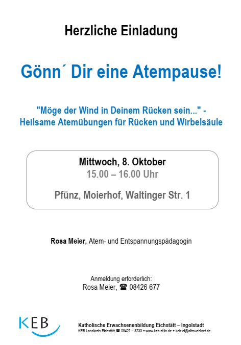 Gönn dir eine Atempause Unterstützende Atemübungen für einen guten und erholsamen Schlaf Rosa Meier, Atem- und Entspannungspädagogin Anmeldung erforderlich: Rosa ...