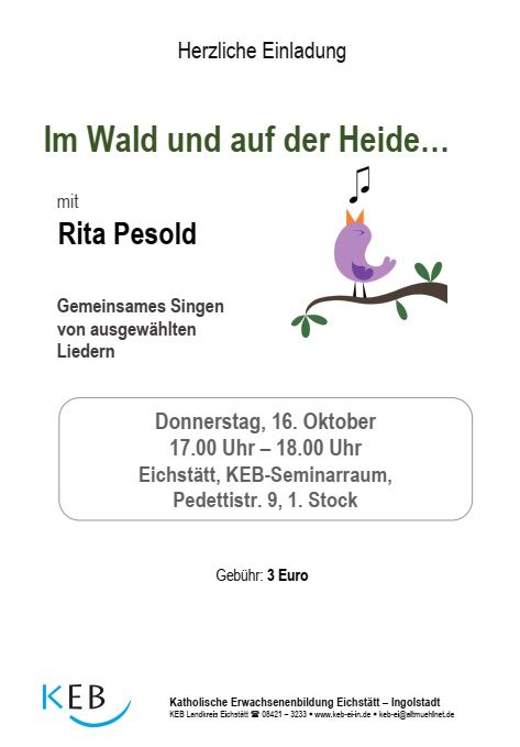 Anmeldung: Monika Pasiziel, 08426 98 86 10 oder KEB, 08421 3233, E-Mail: keb-ei@altmuehlnet.de