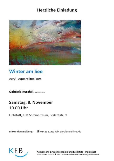 Anmeldung erforderlich, E-Mail: keb-ei@altmuehlnet.de, Telefon: 08421 3233